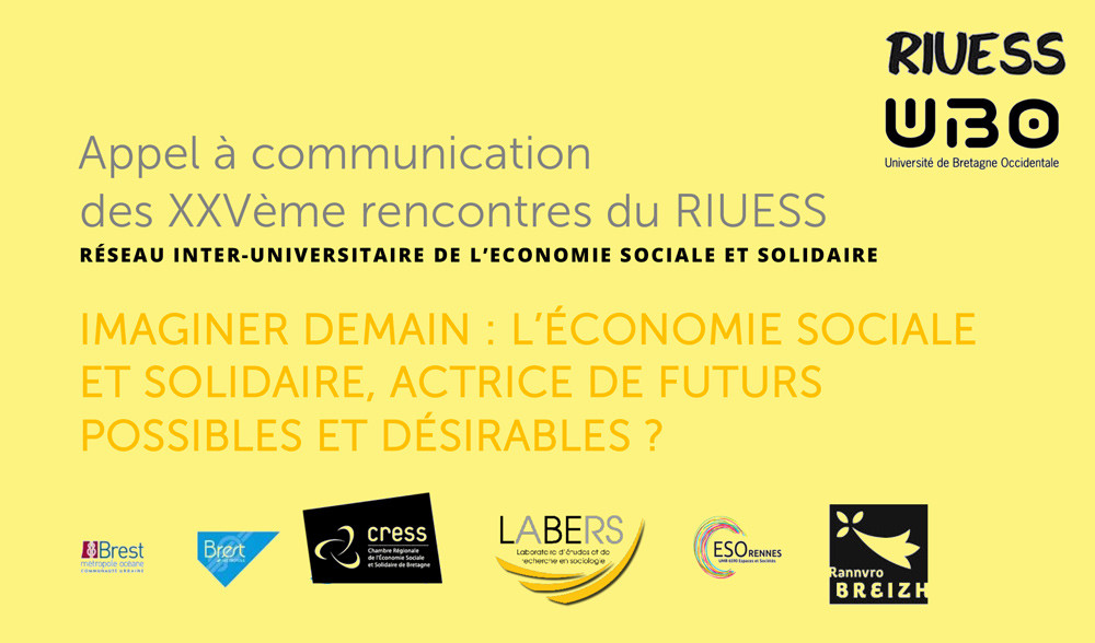 Les XXVe Rencontres du RIUESS se dérouleront à l'Université Bretagne Occidentale et porteront sur la contribution de l’ESS aux futurs possibles et désirables. Elles exploreront les ressorts et les logiques de développement territorial au regard de l'économie sociale et solidaire. Il s'agit de proposer un état approfondi des recherches en ESS ou se situant dans le champ de l'ESS, sous différents angles problématiques disciplinaires ou transversaux.